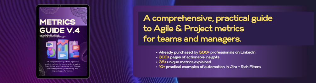 Metrics Guide v.4 – a practical e-book where I’ve distilled 10 years of hands-on experience into a concise, no-fluff guide for measuring and analyzing metrics in teams and projects. Every insight comes from real practice, not theory.
